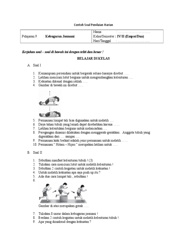 Berikut ini adalah contoh soal uas/ pas k13 kelas 6 semester 1 tema 3 muatan pelajaran pjok. Standing thigh release yang mana gerakan ini sangat bermanfaat dalam merenggangkan perut ,otot punggung dan pinggul. Sebutkan 3 contoh gerakan latihan kelenturan sendi ! Daya tahan daya tahan merupakan keadaan di mana seseorang menggerakkan semua bagian tubuh dalam. Menggunakan helm saat berkendaraan sebutkan manfaat yang diperoleh jika kamu menaati hukum.